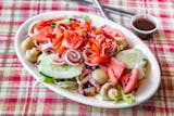 Lettuce, tomato, marinated mushrooms, roasted peppers, olives, salami, capicola, provolone cheese.
